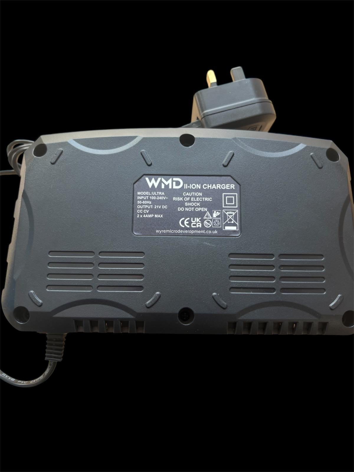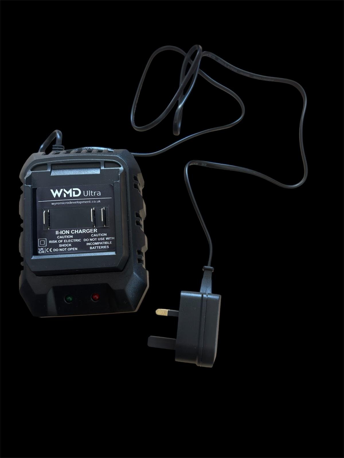 WMD Ultra Li ion Battery Fast Chargers are Li ion chargers in both single and double battery charging formats. The Ultra chargers are specifically designed for the professional range of electrofishing backpack batteries, WMD Ultra. Constant current, constant voltage. Output: 21v max, 18-21vdc; 4A max (single battery charger 2A max). Input 100-240vac. The higher charge rate provides faster charging of electrofishing batteries without exceeding rated charge rates and so providing a balance of battery life and chargeability. Both chargers have charge status LED’s and come with mains plug and barrel jack connection for the battery end.